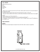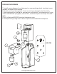 TOOLS NEEDED Phillips head screw driver Drill Drill bit Stud finder Pencil 1. Mount over a counter top no less than 16 inches (40cm) above counter. Do not install dispenser over electrical outlets. 2. Hold the holster 16 against bare wall and mark location of screws on the wall. 3. Drill out 4 holes and insert wall anchors, install holster 16 and insert screws (do not over tighten screws). 4. Return internal unit 14 into holster 16. 5. Return reservoir being sure pump tab 10 is inserted around flange 17. 6.