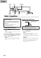 Basic POWER RESET Basic Operation Detaching the Front Panel 1 2 3 Press and hold the POWER button at least 3 seconds to turn off the power. Press the (Release) button at left side until the front panel pops out. Grasp the left side of the front panel and pull it out. NOTES • The front panel may become hot in normal usage (especially the connector terminals on the back of the front panel), this is not malfunction. • To protect the front panel, place it in the supplied carrying case.