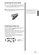 Attaching the Front Panel insert the right side of the front panel into 1 First, the main unit. Align the groove on the front panel with the projections on the main unit. 2 Push the left side of the front panel until it locks firmly into the main unit. • Before attaching the front panel, make sure that there is no dirt or dust on the connector terminals and no foreign object between the front panel and the main unit. 2 1 Initial System Start-Up Make sure that the Power is turned off.