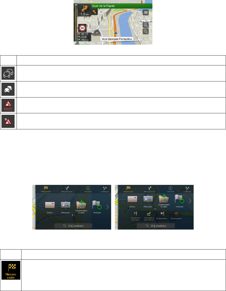 U ziet de volgende menuopties wanneer u navigeert zonder geplande route: