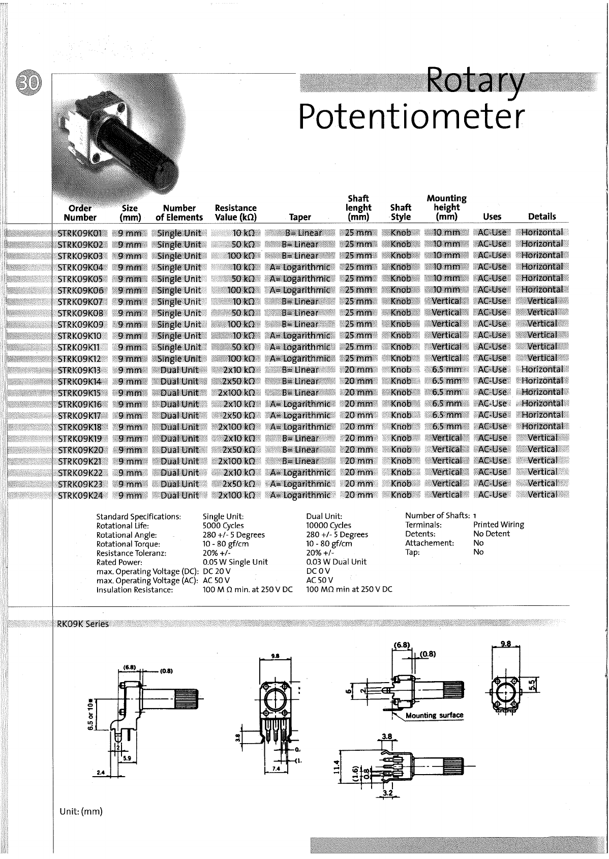 Rotary Potentiometer 100kOhm, 50mW, ±20 %