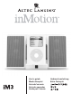 INMOTION IM3 Mulai Pemutaran 1. Hidupkan iPod Anda. Sistem Audio Portabel 2. Hidupkan sistem inMotion iM3 Altec Lansing dengan memposisikan dulu sakelar daya (power) di bagian belakang unit ke psosisi “On”, kemudian menekan tombol siaga (standby) pada panel depan . LED hijau akan menyala di samping tombol bila daya sudah dihidupkan. LED akan berwarna kuning gading untuk menandakan kapan baterai harus diganti. Terima kasih atas pembelian produk Altec Lansing ini.