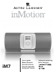 INMOTION IM7 PORTABLE AUDIO DC (Battery) Power Before your iPod or other portable audio device is connected to the inMotion iM7 system, install eight D batteries (not included) into the battery compartments on the bottom of the inMotion iM7 system. Make sure the batteries are installed as illustrated in the battery compartments. You can now use your inMotion iM7. SYSTEM Thank you for purchasing this Altec Lansing product. For generations, Altec Lansing has been first in audio innovation.