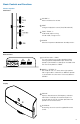 Basic Controls and Functions Wireless Speaker Side Panel 1 2 3 1 OLUME +/– V Raises and lowers the volume. 2 I NPUT Changes the playback source (iPod, FM and AUX). 3 UNE / TRACK +/– T In FM mode, adjusts tuning. In iPod mode, changes tracks. 4 OWER P Switches the power mode between Standby and On. 1 OCATION: WALL / TABLE L This switch adjusts the sound to provide the best listening experience dependent upon whether the speaker is positioned on a table top or mounted to the wall.