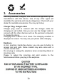 3. Accessories Use only batteries, chargers, and accessories approved by the manufacturer with this device. Use of any other types will invalidate the warranty and may be dangerous. Check with your dealer for available accessories. You may opt to buy: Charger Plug, charger cable Charger plug used to connect with the charger cable for charging on wall outlets. Also you can use the charger cable to connect with the other devices such as the personal computers to charge the phone.
