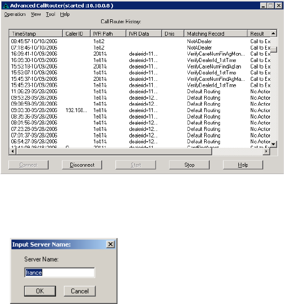 2. Click the Connect button to enter the Call Router Server Name or IP