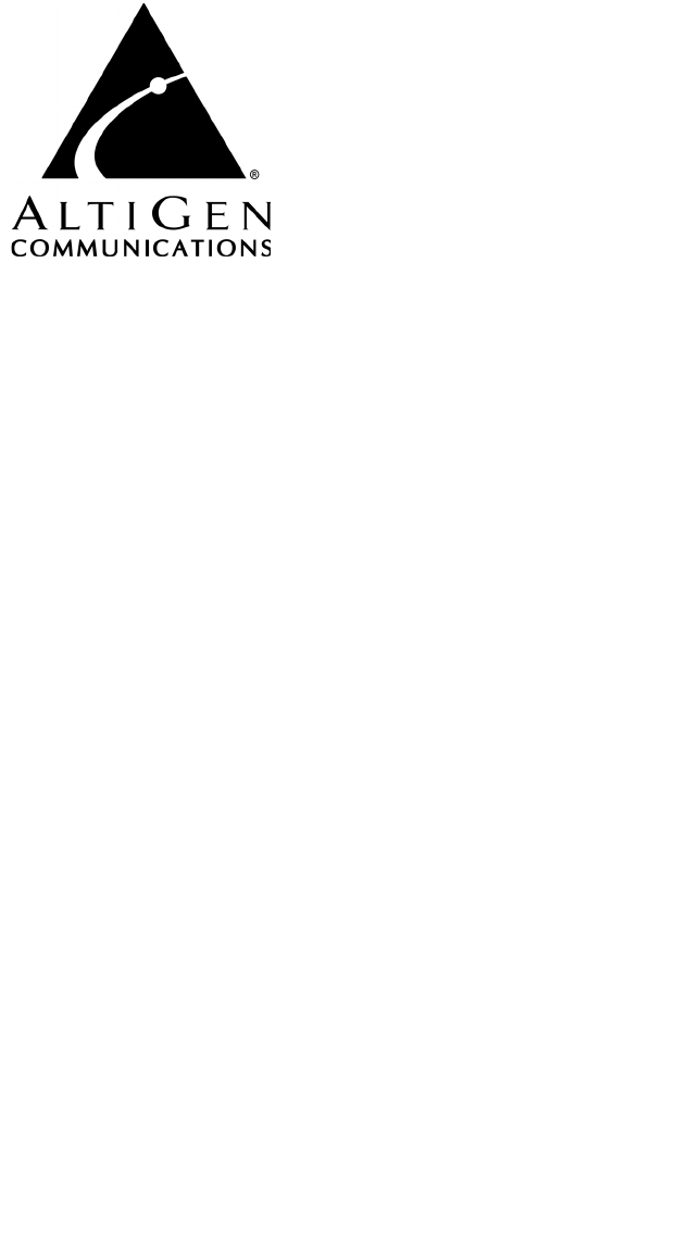 WARNING! Toll fraud is committed when individuals unlawfully gain access to customer telecommunication systems. This is a criminal offense. Currently, we do not know of any telecommunications system that is immune to this type of criminal activity. AltiGen Communications, Inc., will not accept liability for any damages, including long distance charges, which result from unauthorized and/or unlawful use. Although AltiGen Communications, Inc.