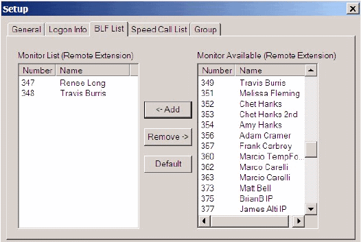 BLF List Setup