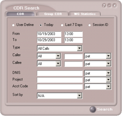 The CDR Search main window has three tabs: CDR, Group CDR, and
