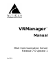 • Microsoft Internet Explorer 6.0 or later. VRManager Client Requirements VRManager client systems must meet the following requirements. Operating Systems supported: • Windows 7 (32-bit or 64-bit) • Windows 8.1 (64-bit) Client System requirements: • IBM/PC AT compatible system • 1GHz CPU or faster • 2GB hard drive disk space • 1GB RAM Pre-Setup The SQL 2008 Express database is installed with the VRManager Setup program. Java JRE 1.6 will be automatically installed.