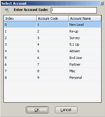 and click OK. If a list is not displayed, enter an account code in the Enter
