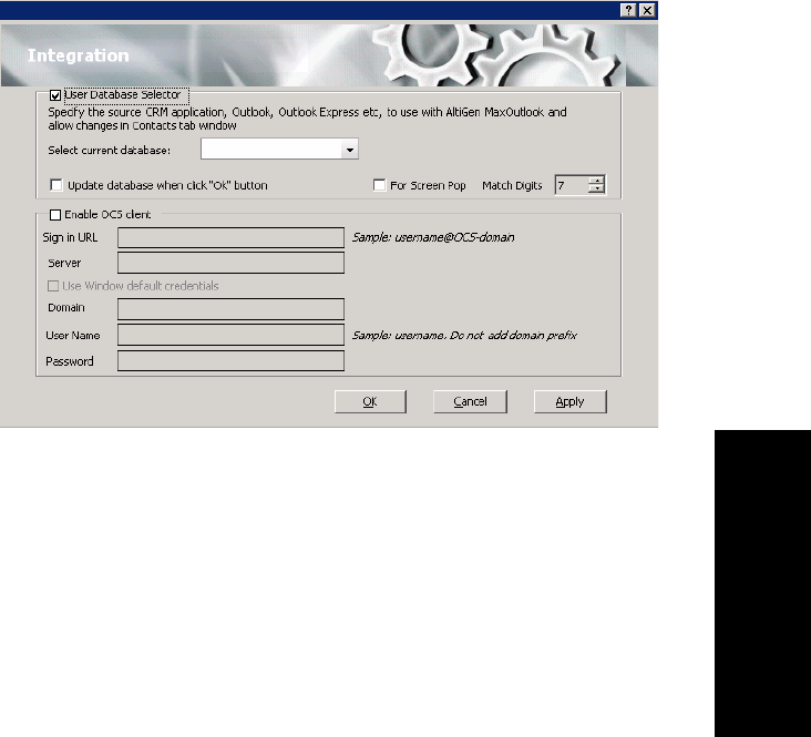 For Screen Pop — Select this check box if you want the Microsoft Outlook
