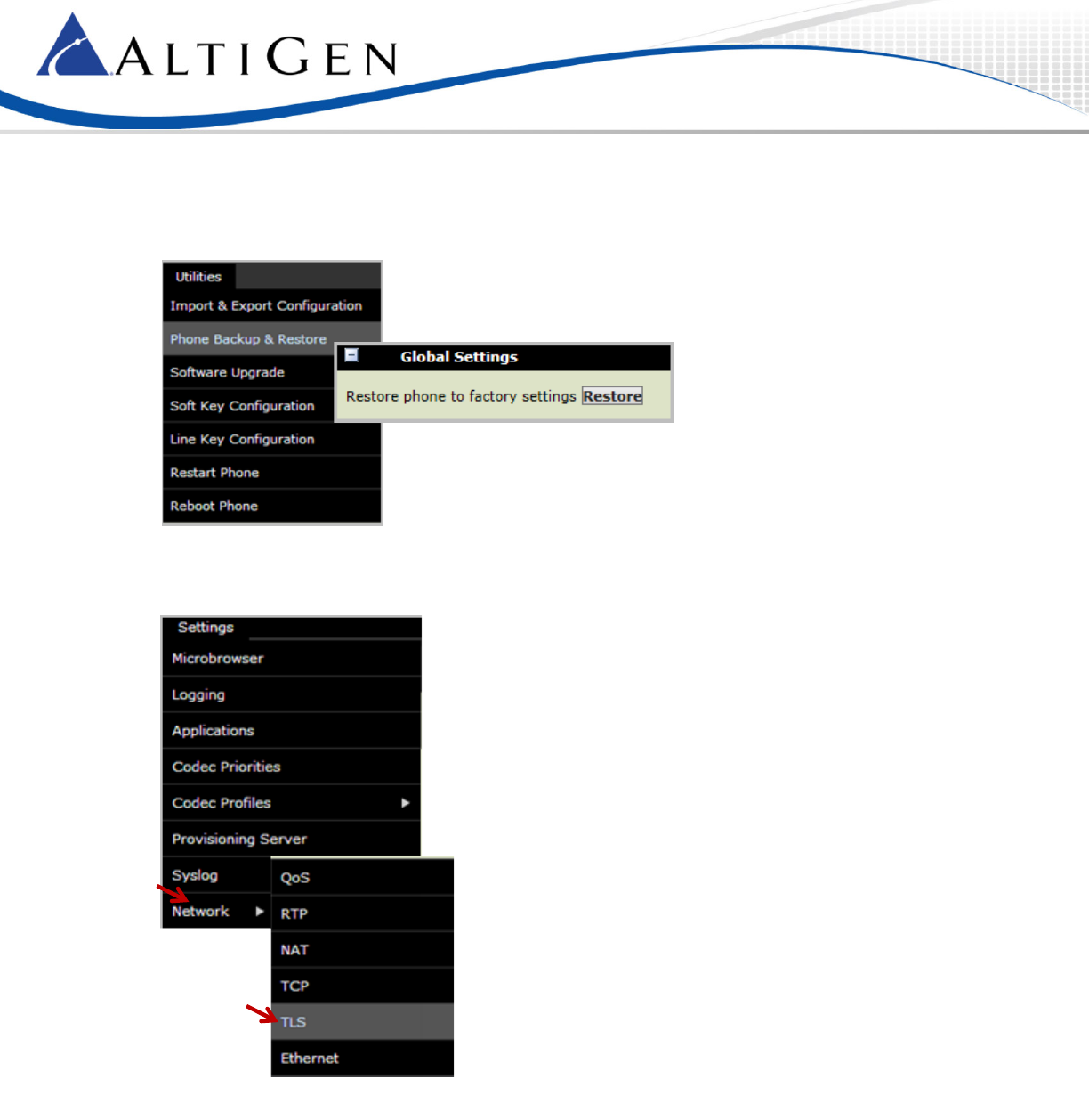 5. Select Utilities > Phone Backup & Restore > Global Settings. Click Restore to restore the phone to its