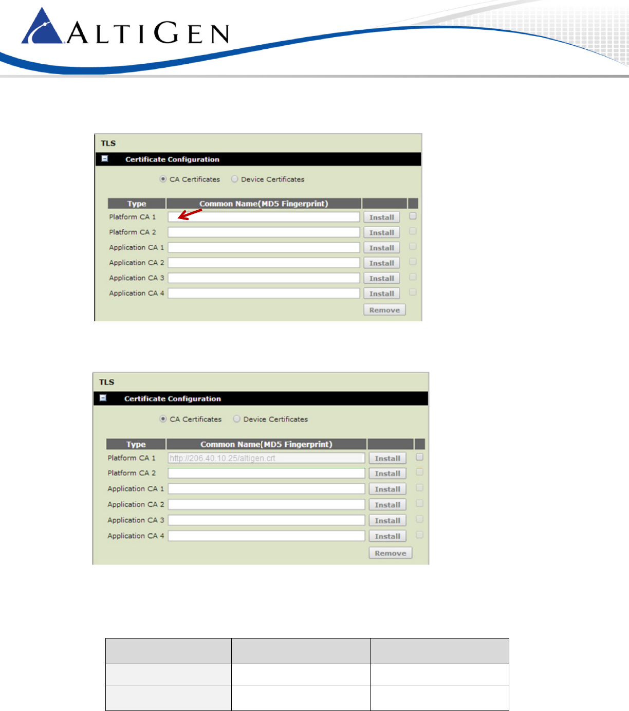 7. For Platform CA1, enter http://[MAXCS Server IP Address]/altigen.crt and click the Install button to install