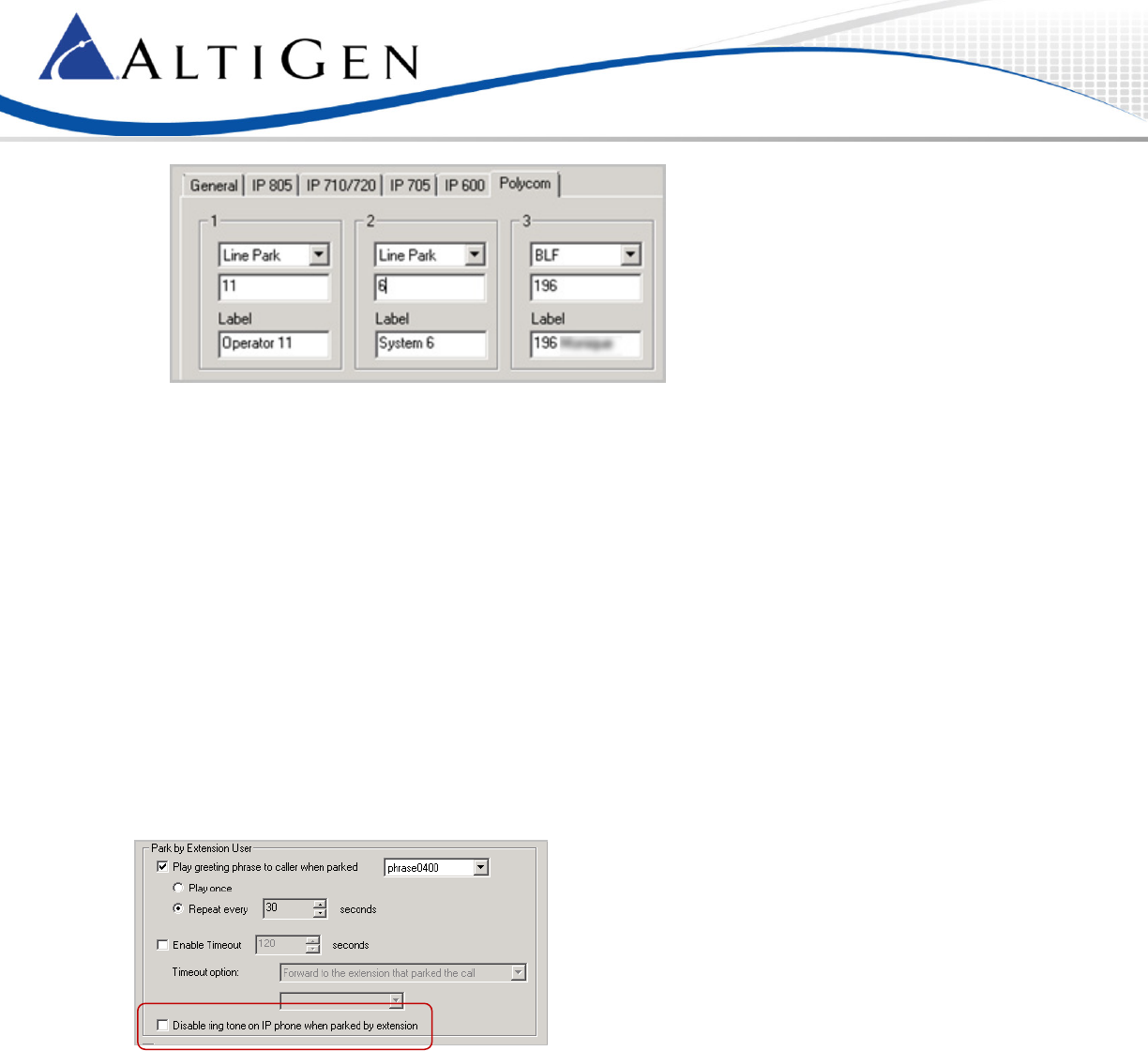 Note: The Polycom Line Park feature supports all of the MAXCS standard Line Park features except for one. The