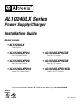 AL1024ULX Series Power Supply/Charger Installation Guide Models Include: • AL1024ULX - Single Output • AL1024ULXPD4 • AL1024ULXPD4CB • AL1024ULXPD8 • AL1024ULXPD8CB • AL1024ULXPD16 • AL1024ULXPD16CB - Four (4) Fused Outputs - Eight (8) Fused Outputs - Sixteen (16) Fused Outputs - Four (4) PTC Outputs - Eight (8) PTC Outputs - Sixteen (16) PTC Outputs For a red enclosure add an “R” suffix to the part #, e.g. AL1024ULXPD8R SECURITY SIGNALING LISTED LISTED Rev.
