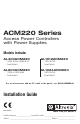 ACM220 Series Access Power Controllers with Power Supplies Models Include: AL400ACM220 AL1012ACM220 AL600ACM220 AL1024ACM220 - 12VDC @ 4A or 24VDC @ 3A. - Fused Outputs - 12VDC or 24VDC @ 6A. - Fused Outputs - 12VDC @ 10A. - Fused Outputs - 24VDC @ 10A. - Fused Outputs For a red enclosure add an “R” suffix to the part #, e.g. AL1024ACMR220 Installation Guide Rev. 010213 More than just power.TM Installing Company: ________________ Service Rep.