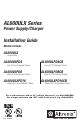 AL600ULX Series Power Supply/Charger Installation Guide Models Include: AL600ULX - Single Output. AL600ULPD4 AL600ULPD4CB AL600ULPD8 AL600ULPD8CB AL600ULXPD16 AL600ULXPD16CB - Four (4) Fuse Protected Outputs. - Eight (8) Fuse Protected Outputs. - Sixteen (16) Fuse Protected Outputs. - Four (4) PTC Protected Outputs. - Eight (8) PTC Protected Outputs. - Sixteen (16) PTC Protected Outputs. For a red enclosure add an “R” suffix to the part #, e.g.