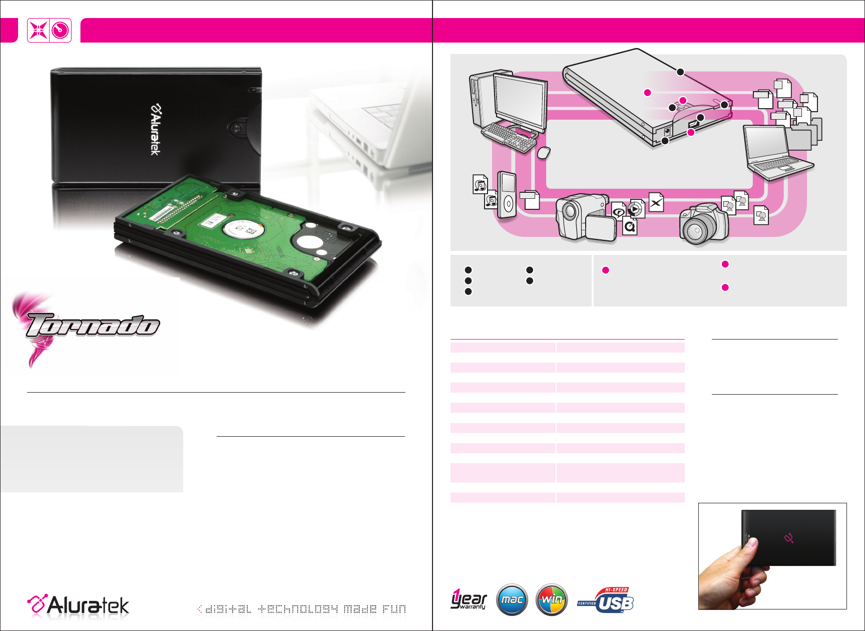 • High-Speed USB 2.0 with data transfer speed up to 480 Mbps