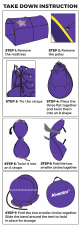 TAKE DOWN INSTRUCTION STEP 1: Remove STEP 2: Remove the mattress the poles STEP 3: Tie the straps STEP 4: Place the three flat together and twist them into an 8 shape STEP 5: Twist it into STEP 6: Fold the two an 8 shape smaller circles together STEP 7: Fold the two smaller circles together Slide the band around the tent to hold in place for storage