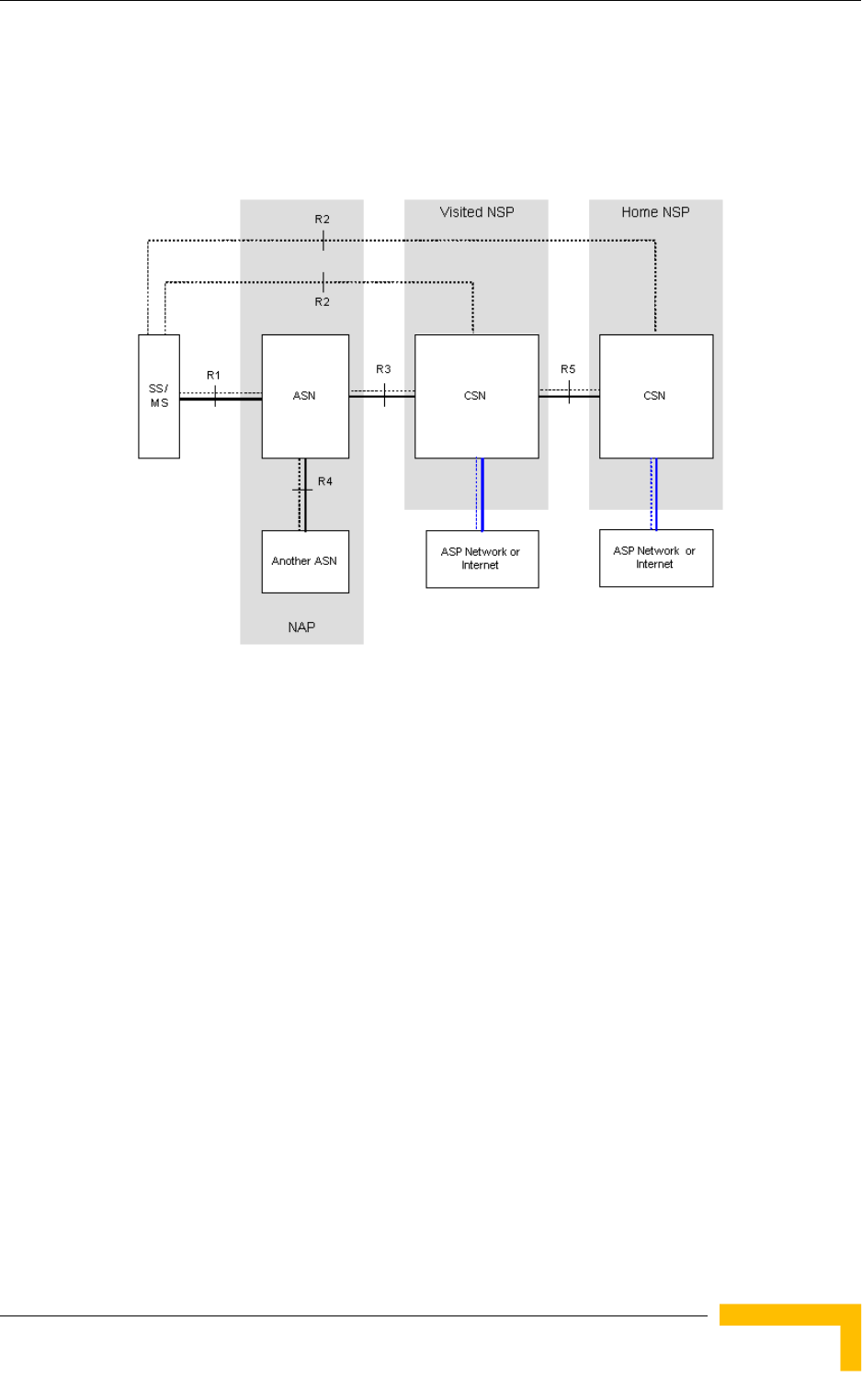 Figure 1-2 and Figure 1-3 show the basic mobile WiMAX network architecture,