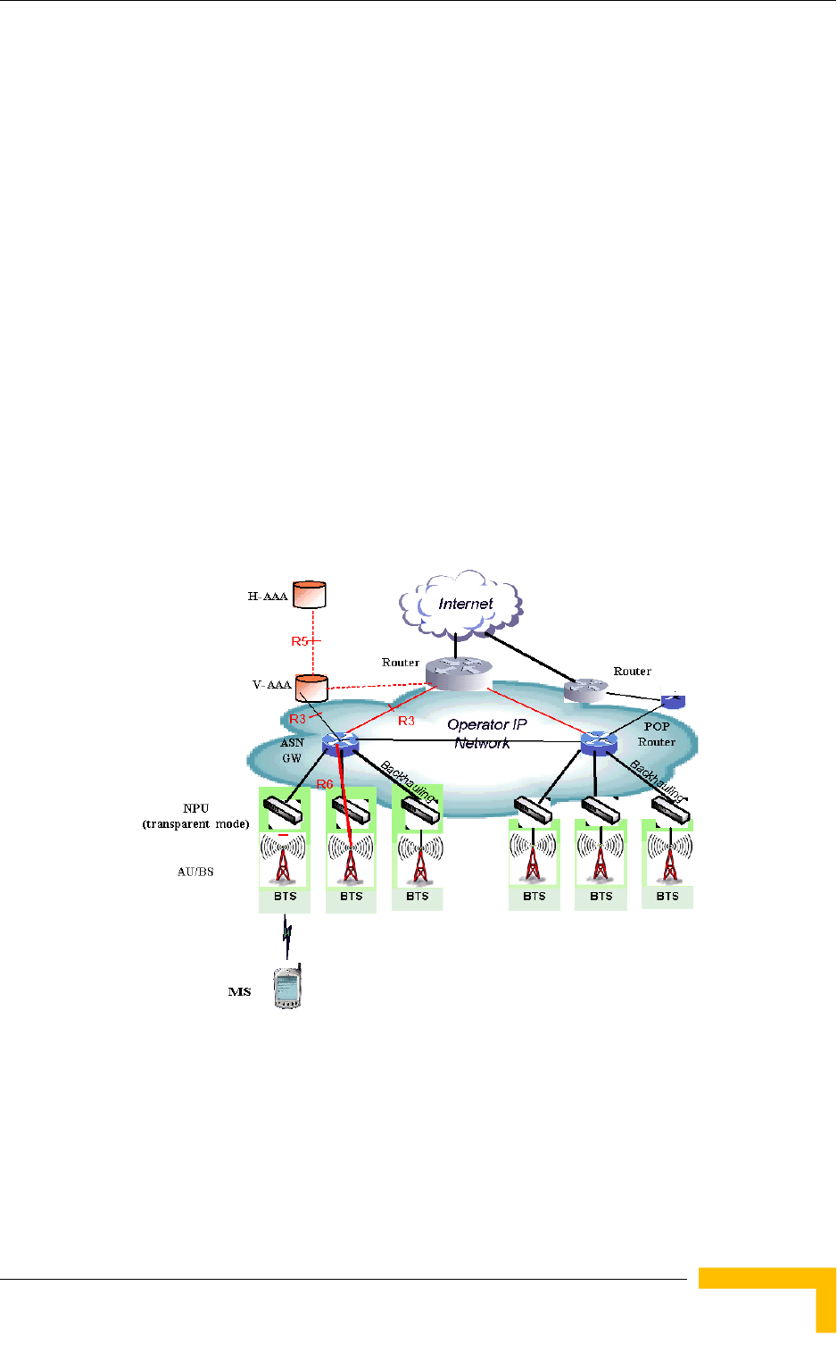 least one central ASN-GW, and the BTS NPU operates in transparent mode, as