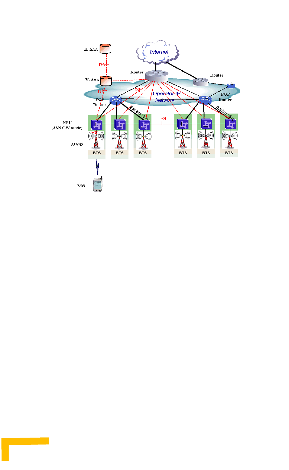 In the distributed approach, the BTS NPU operates in ASN-GW mode, as shown in