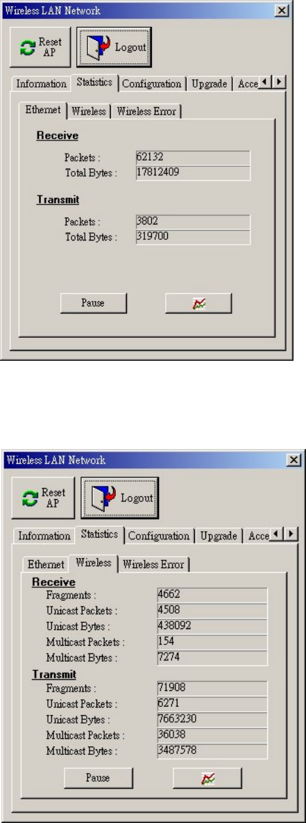 The statistics tab contains three of the following items for you to monitor the Ethernet and