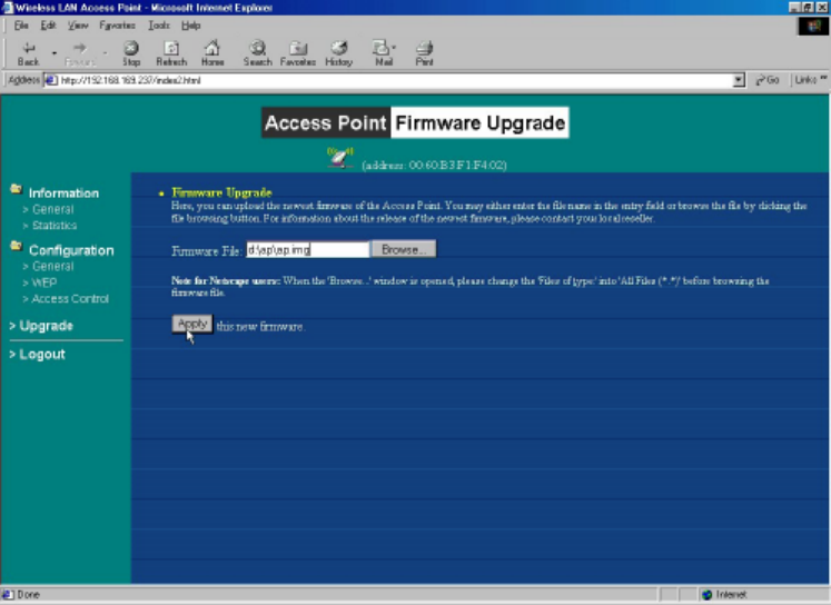 Here, you can upload the newest firmware of the WL1100B