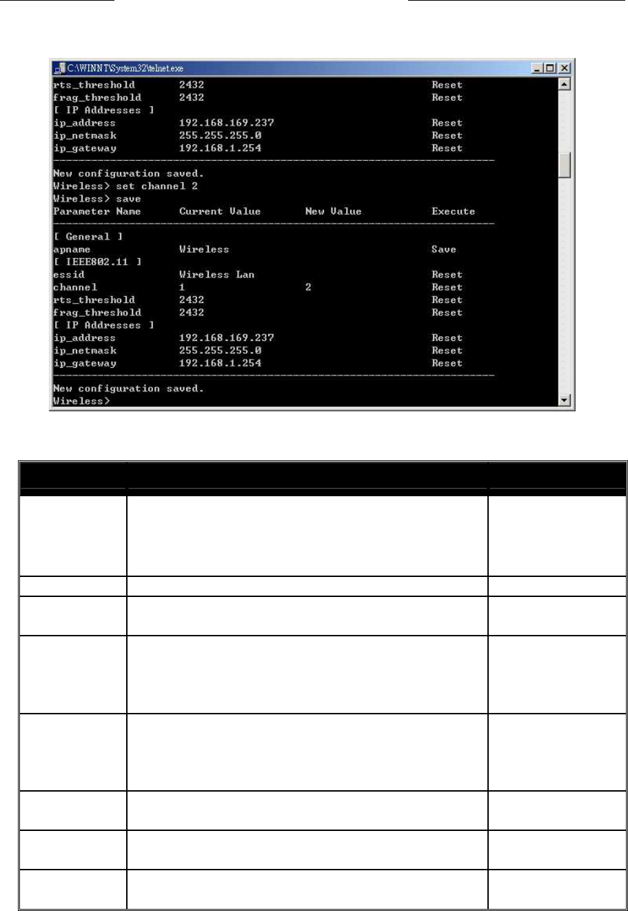 required for changes to take effect. Always reset your AP with the “Reset” command.