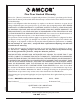 Une Garantie Limitée d’Une Année Amcor, Inc. (« Amcor ») mérite l’acheteur original du produit (l’ « Acheteur ») qui achète aux EtatsUnis qui le produit d’Amcor avec lequel cette garantie est enclose est libre des défauts dans les matériels et dans l’exécution. Le devoir seul d’Amcor sous cette garantie est de remplacer, ou à la discrétion d’Amcor, réparer, gratuitement, toutes les parties défectueuses, pour une période de l’un (1) l’année de la date de l’achat original.