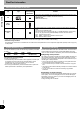 Unit displays “EMERGENCY STOP” “F ” “H ” ( stands for a number.) “MEMORY FULL ERASE TITLE” “NO PLAY” “NO REMAIN” “NO TRACK” “NO WMA/MP3” “NOT MP3 ERROR” “PGM FULL” “PLAYBACK CARD” “READ ERROR” “REMOTE MODE ” is either 1 or 2) ( “SELECT OVER” “SCMS CAN’T COPY” “TAPE PROTECTED” “TITLE FULL” “TOC ERROR” “TOC READING” “TRACK FULL” “TRACK PROTECTED” “--:--” You cannot edit or enter titles on SD during play. There is no space on the SD card. Erase unneeded tracks (⇒ page 28) or record with another card.