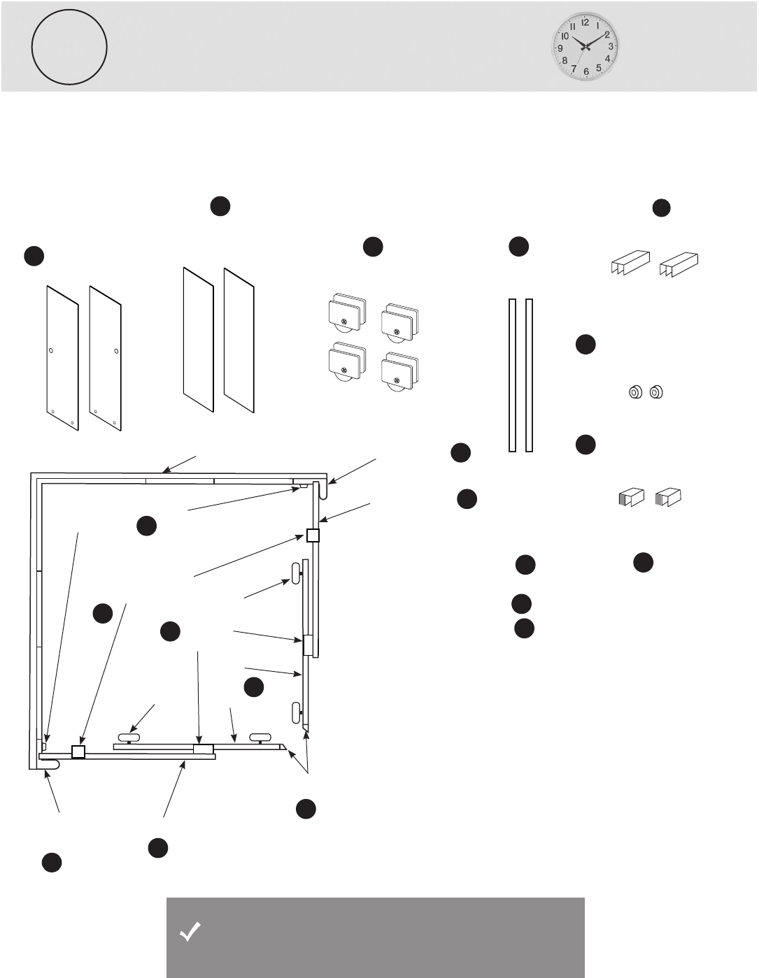 1. Locate the Fixed Glass Panels , Door Slide Brackets , and Clear Silicone.