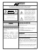 AMERICAN DYNAMICS The installation of this product should be made by qualified service personnel and should conform to all local codes. CAUTION RISK OF ELECTRIC SHOCK DO NOT OPEN The lightning flash with arrowhead symbol, within an equilateral triangle, is intended to alert the user to the presence of uninsulated "dangerous voltage" within the product's enclosure that may be of sufficient magnitude to constitute a risk of electric shock to persons.