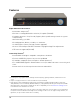 Appendix A: System Specifications Appendix A: System Specifications DVR: SYSTEM PLAYBACK Operating System Linux (embedded) Pentaplex Simultaneous View, Record, Playback, Backup & Remote Monitoring Number of Channels 4/8/16 Channel Inputs/Outputs Video IN 4/8/16 x 1Vp-p, CVBS, 75ohms, BNC Video OUT 2 x BNC VGA OUT 4 ch: Yes 8 ch: Yes 16 ch: VGA port works only when HMDI is not used HDMI Yes Audio IN 4 Line in(RCA), G.711(4&8 ch), 16 Line in(BNC), G.711(16 ch) Audio OUT 2 line out(RCA), G.