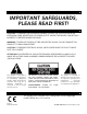 Power Cord Protection Power cords should be routed so that they are not likely to be walked on or pinched by items placed on or against them, paying particular attention to cords at plugs, convenience receptacles, and the point where they exit from the product. Lightning If the unit is not plugged into an appropriately rated surge protector, unplug the unit from the wall in the event of a lightning storm in order to protect it from powerline surges.