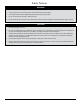 Safety Notices WARNING 1. Make sure that all the cooktop parts are dry before lighting a burner. 2. Turn the knobs to the “OFF” position prior to removing them from the valve stems. 3. The cooktop should never be operated without the knobs and trim rings in place. 4. Do not use the range for warming or heating the room. 5. Non-stick coatings, when heated, can be harmful to birds. Remove birds to a separate, well-ventilated room during cooking. CAUTION 1.