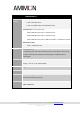 Product Description (1) AMN41012 Video LED Network LED 2dBi or 5dBi Antenna Power LED Reset button Pairing button Boot button Debug Connector Board-toboard connector Figure 1 –AMN41012 top view Amimon Ltd. 26 Zarhin St. Raanana, Israel. Tel: +972-9-9629222 www.amimon.com 2017 © All rights reserved to Amimon ltd.