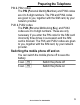 Preparing the Telephone Charging the battery Before starting to charge the battery, check that it has been installed properly. Do not remove the battery while it is being charged. This could damage the phone. When charging the battery for the first time, it should be charged for at least 4 hours. Some batteries only reach their full capacity after several complete charge/discharge cycles.