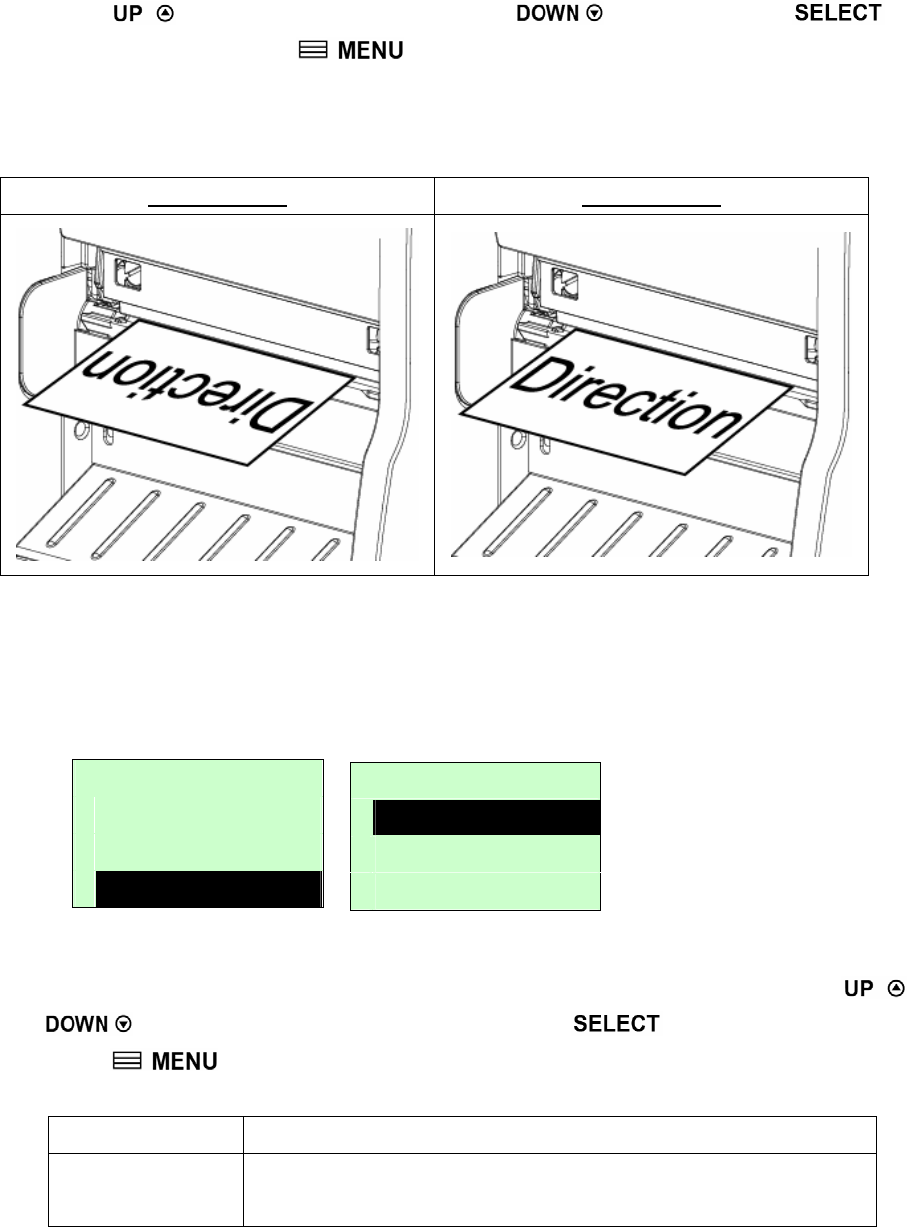 The direction setting value is either 1 or 0. Use this option to setup the printout direction. Printer