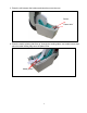 4. Push the peel-off panel back to the printer. Label exits here Backing paper (Liner) 5. Close the top cover gently. 6. Press the FEED button to test. Note: Please calibrate the gap/black mark sensor when changing media.