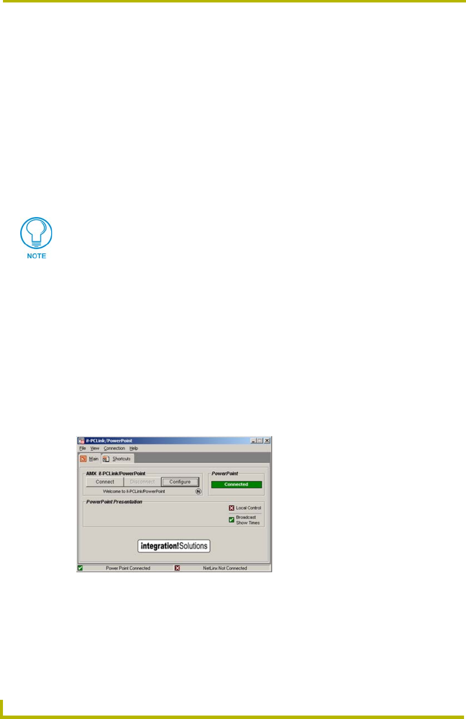 In order to control Microsoft® PowerPoint from a NetLinx system, i!-PCLink/PowerPoint must
