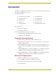 Programming i!-Weather UI_FORMAT_BUTTONS, UI_AUTO_REFRESH_BUTTONS, UI_LIST_SELECT, UI_LIST_CONTROL, UI_LIST, UI_LIST_STATION, UI_BROWSE_METHOD, UI_SCROLLBAR_LEVEL, UI_LIST_INFO, UI_INDEX_FILE_UPDATE, UI_INDEX_FILE_UPDATE_PROGRESS cWEATHER_DATA_ENCODED_BUFFER) Where: mdlWEATHER is a unique module name. i!-WeatherApplicationMod.tko Module Parameters dvWEATHER_IP_CLIENT The device of an available IP port on the NetLinx Master for updating i!-Weather data.