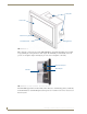 Installation Installing the NXD-500i into drywall Unlike most AMX touchpanels, the NXD-500i comes with a clear plastic backbox (FIG. 7) designed to attach the panel to standard drywall. This backbox has a locking tab on three of the four faces (missing only on the face containing the space for the connections) to help lock the backbox to the wall. These locking tabs are only extended AFTER the backbox is inserted into the wall. Locking tab screws Locking tabs - Closed Locking tabs - Open FIG.