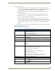 Setup Pages and Descriptions System Connection Page Elements (Cont.) IP Settings: (Cont.) Ethernet Mode Sets the speed of the Ethernet connection to the panel. • Choices are: Auto, 10 Half Duplex, 10 Full Duplex, 100 Half Duplex, or 100 Full Duplex. MAC Address Master Connection: Type Displays a read-only field that is factory set by AMX for the built-in Ethernet interface. Sets the NetLinx Master communication values: Sets the NetLinx Master to communicate with the panel via either USB or Ethernet.