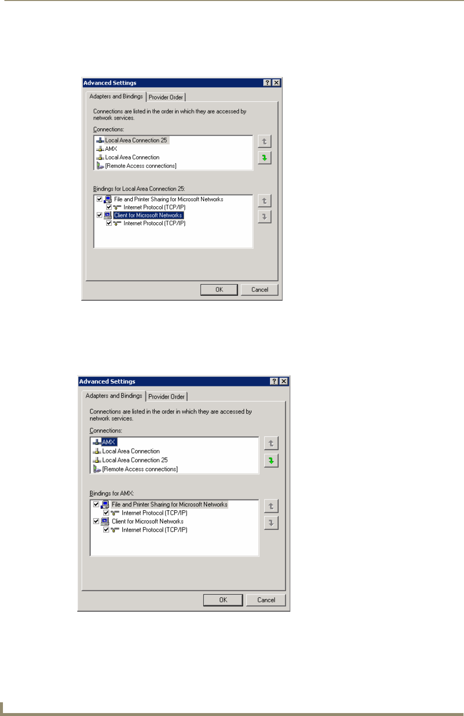 4. Under the Adapters And Bindings tab, the user needs to make sure the Local Area Connection is not