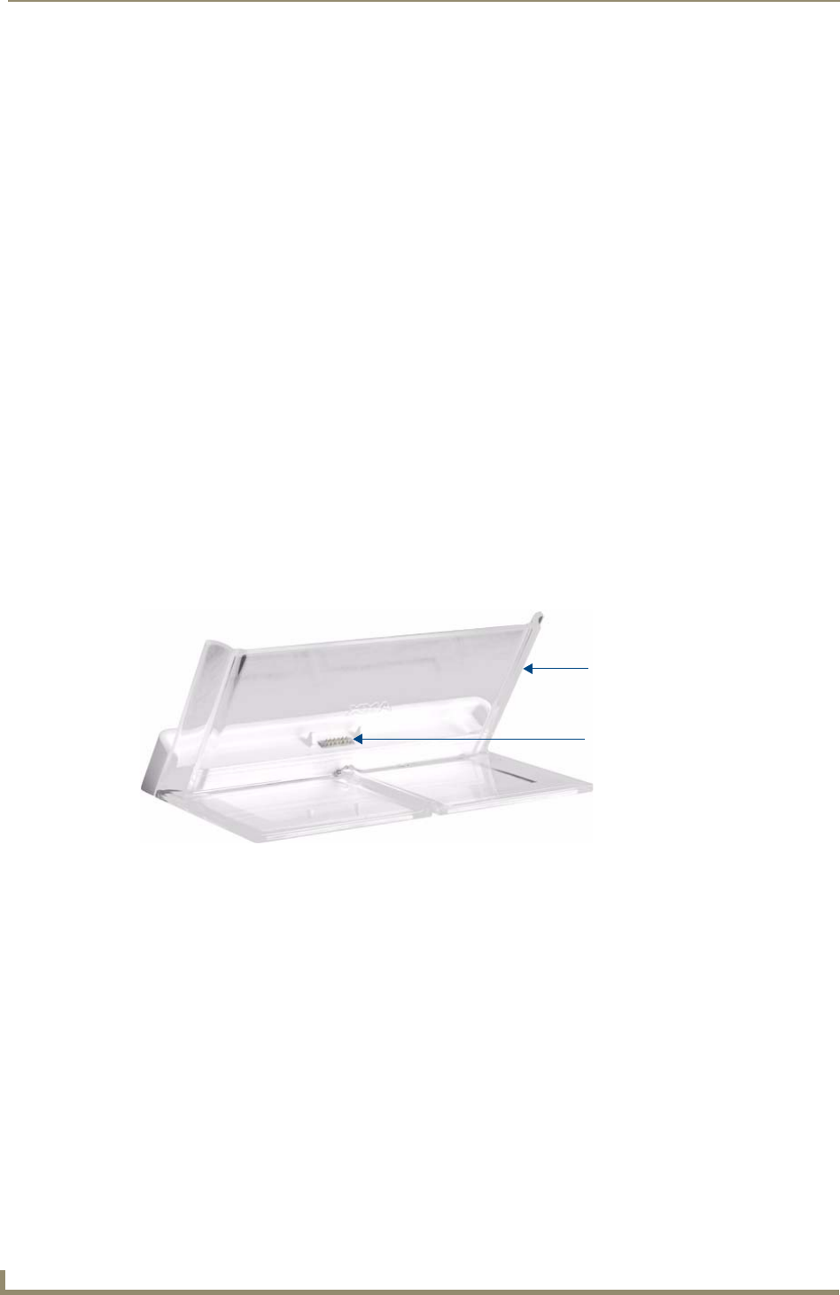 on each side of the cradle. When fully seated, the touch panel’s charging station connector should be