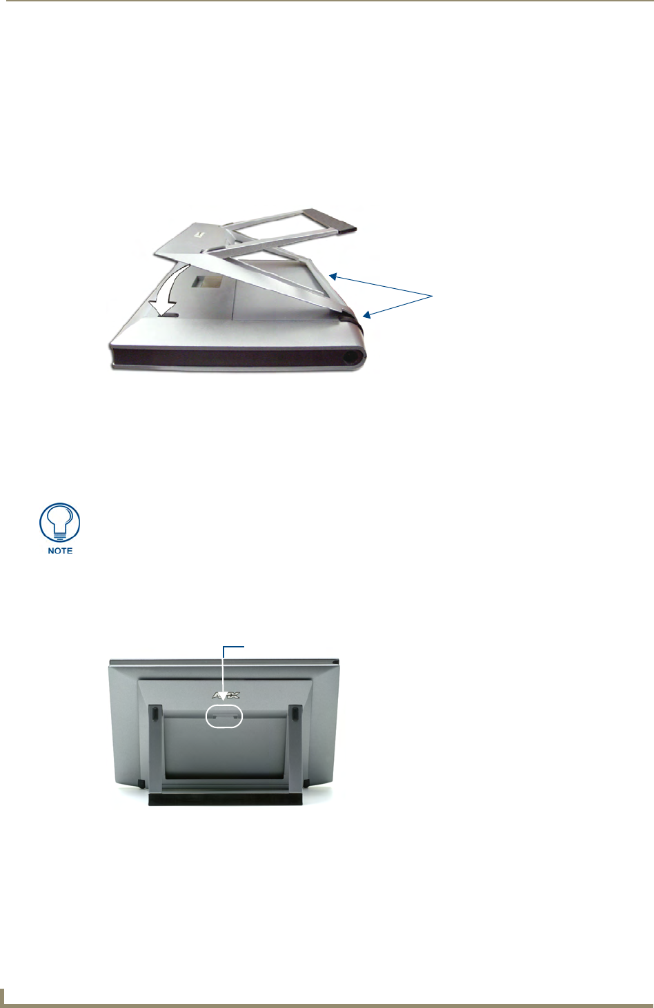 4. Press down on the AMX logo to insert the retractable latch into the opening (just above the MVP