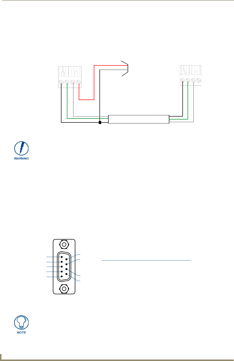 power supply. Do not connect the PWR wire to the AXlink connector’s PWR (+) opening.
