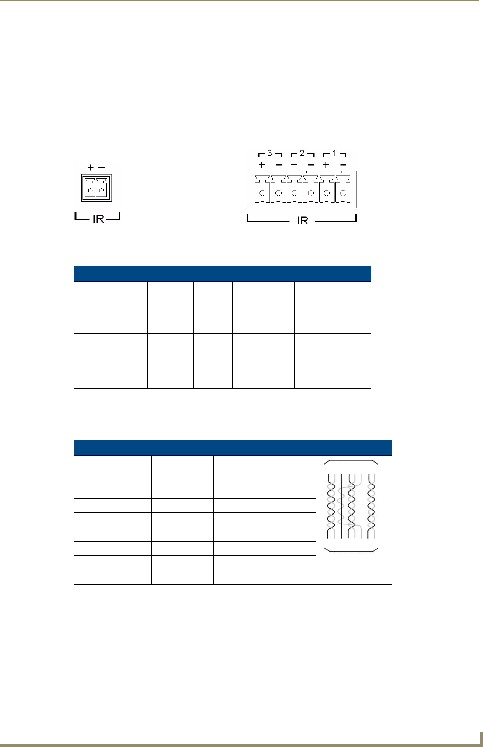 These connectors accept an IR Emitter (CC-NIRC) that mounts onto the device's IR window, or a